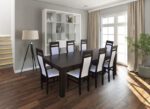 Crafted with precision, this dining set features a sturdy dining table and eight comfortable chairs, all adorned with rock panel accents. The table is constructed using high-quality materials, ensuring durability and longevity. Its sleek and minimalist design is perfect for those who appreciate clean lines and a modern aesthetic.